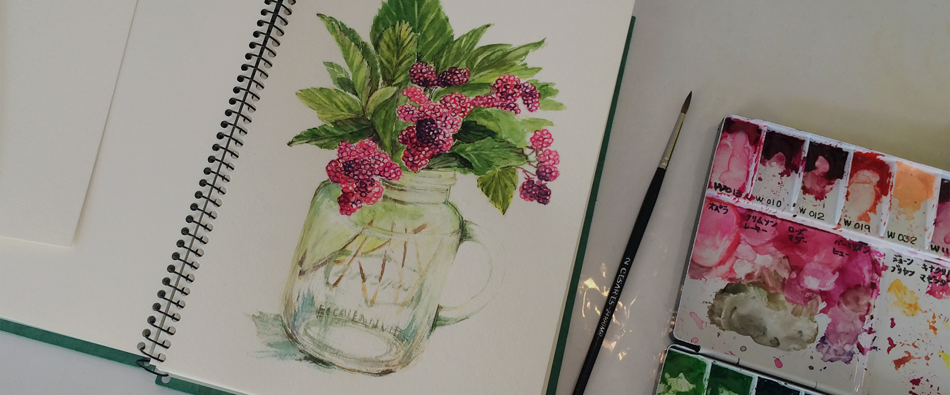 水彩の他、水彩色鉛筆などを交互に使用しすることで作品により深みが現れます。鉛筆に淡彩をほどこされるかたもいらっしゃいます。
