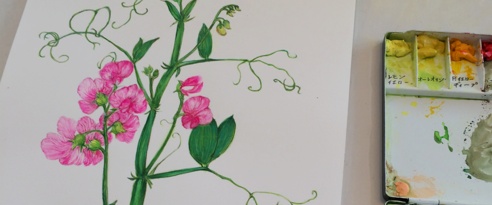 思い出の風景、大事にお育てになった薔薇の花、大好きな巨匠の作品の模写、お手入れに答えるように咲いた月下美人。皆様、したためるように描かれていらっしゃいます。そんなやさしい時間をご一緒させていただいております。