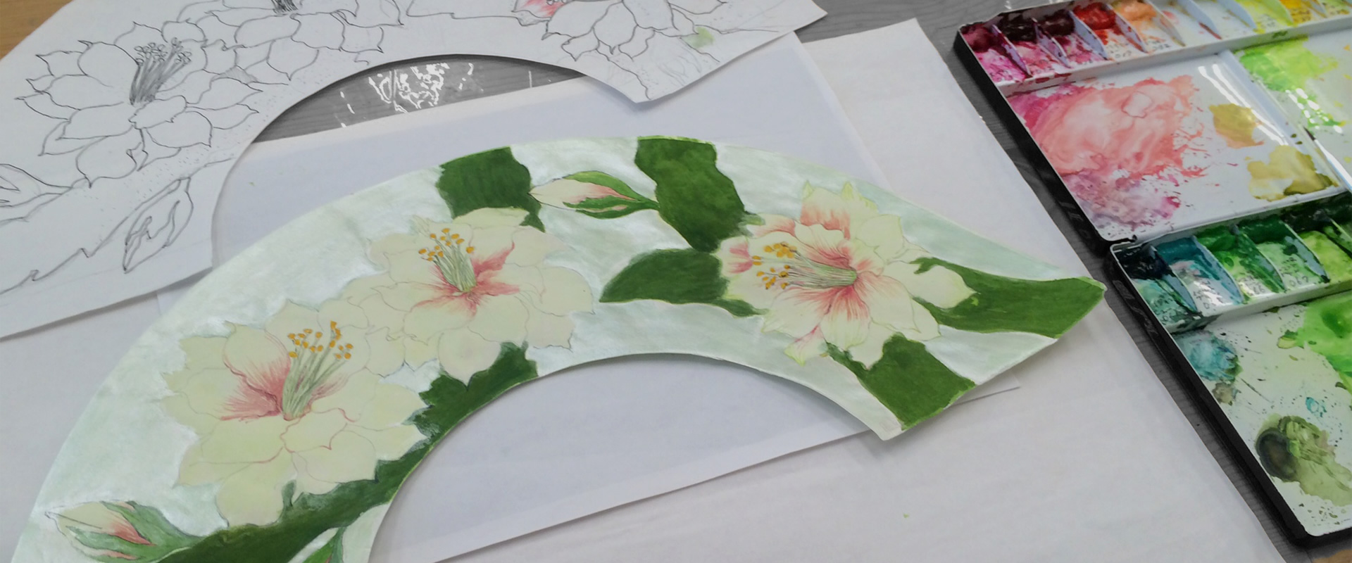 コロリアージュや扇子の制作など、レッスンで学ばれたことを